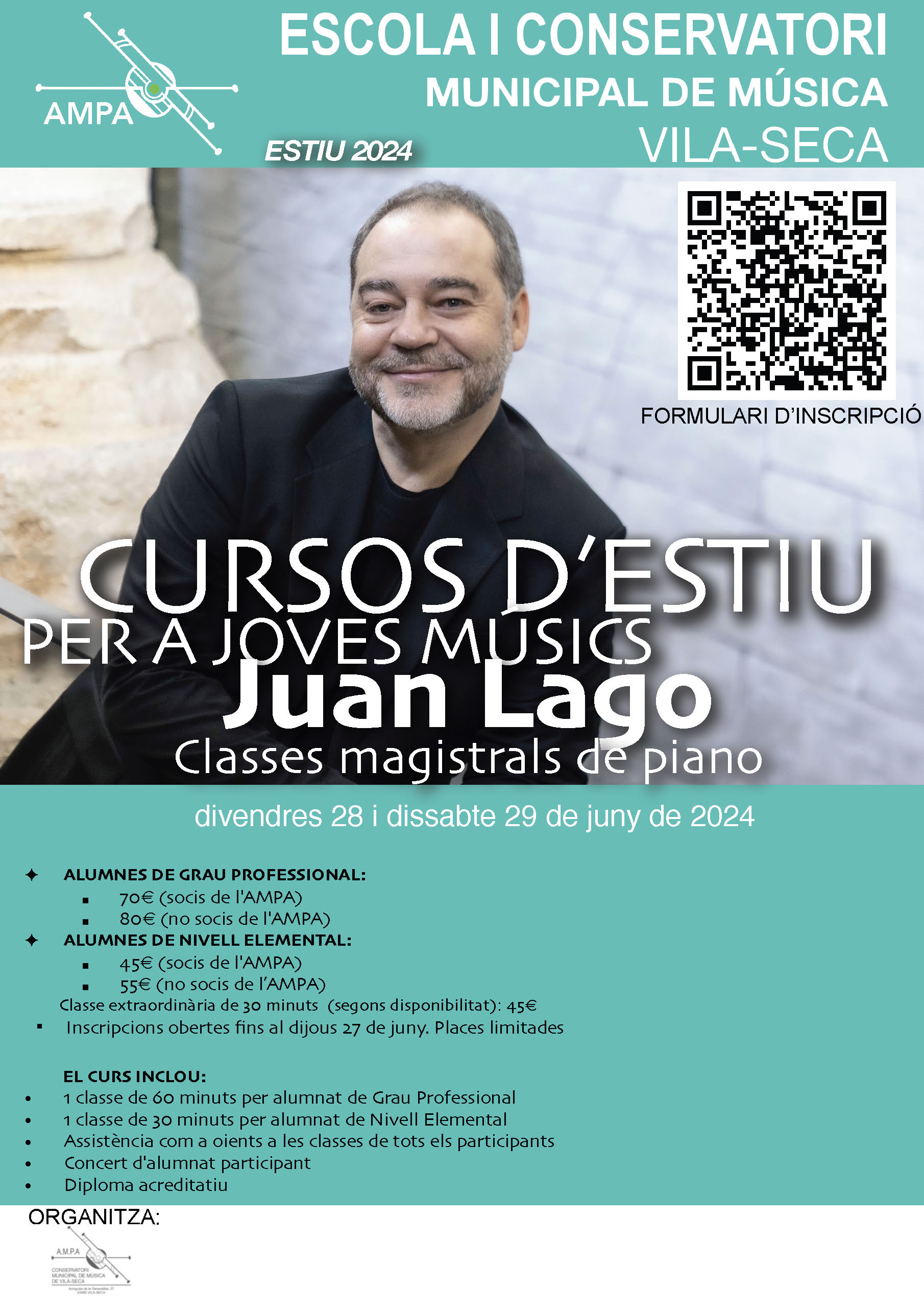 Obertes les inscripcions per al curs d'estiu de Piano amb Juan Lago. Més informació accedint al FORMULARI D'INSCRIPCIÓ.