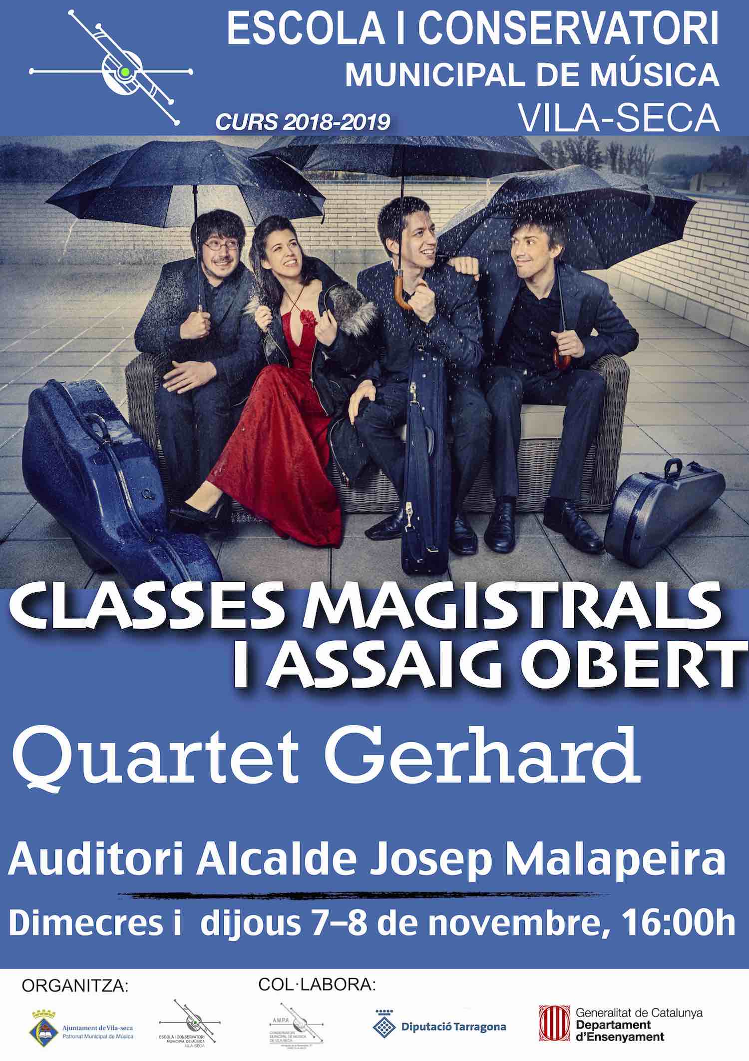 Un dels quartets més reconeguts i actius a Catalunya, amb una aclamada i intensa activitat concertística arreu d'Europa, amb uns vincles molt importants amb el conservatori (tres d'ells són formats a Vila-seca), serà aquests dos dies amb nosaltres. Quartet Gerhard, molt contents de retrobar-vos a casa!