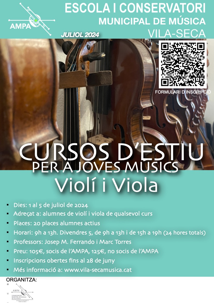 Obertes les inscripcions per al curs d'estiu de Violí i viola impartit per Josep M. Ferrando. Més informació accedint al FORMULARI D'INSCRIPCIÓ.