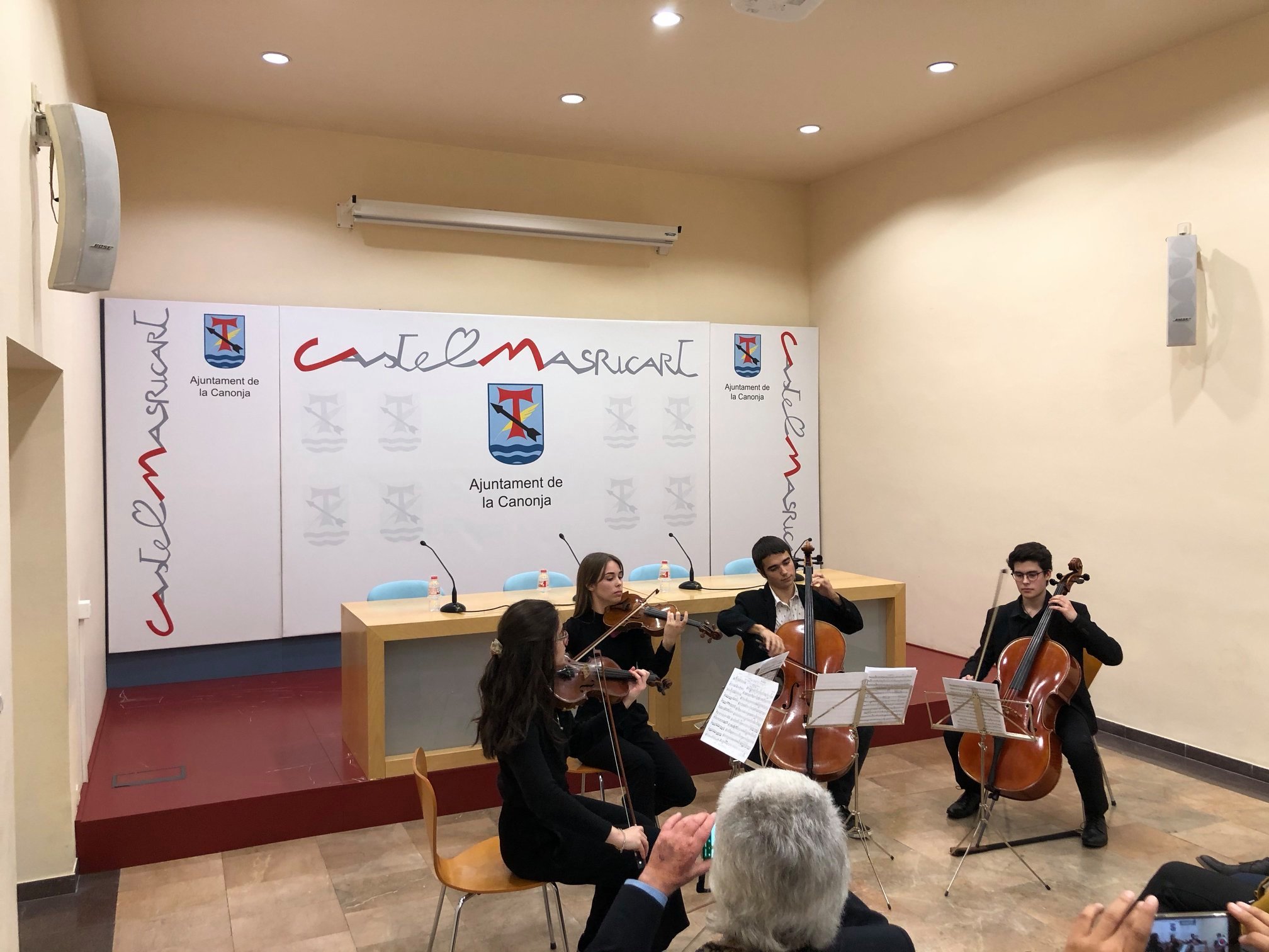 Compartim la imatge d'un quartet de música de cambra del conservatori que, de manera excel·lent, va inaugurar el "VII Simposio Internacional Horizontes Humanos" al castell de Masricart de La Canonja.